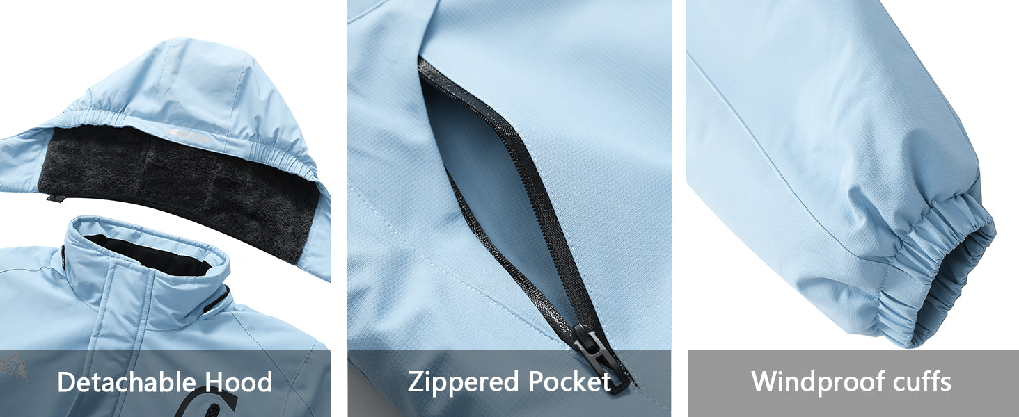 Kid's Ski Jacket Waterproof Winter Coat Boy's and Girl's Fleece Snowboarding Jackets with Detachable Hood