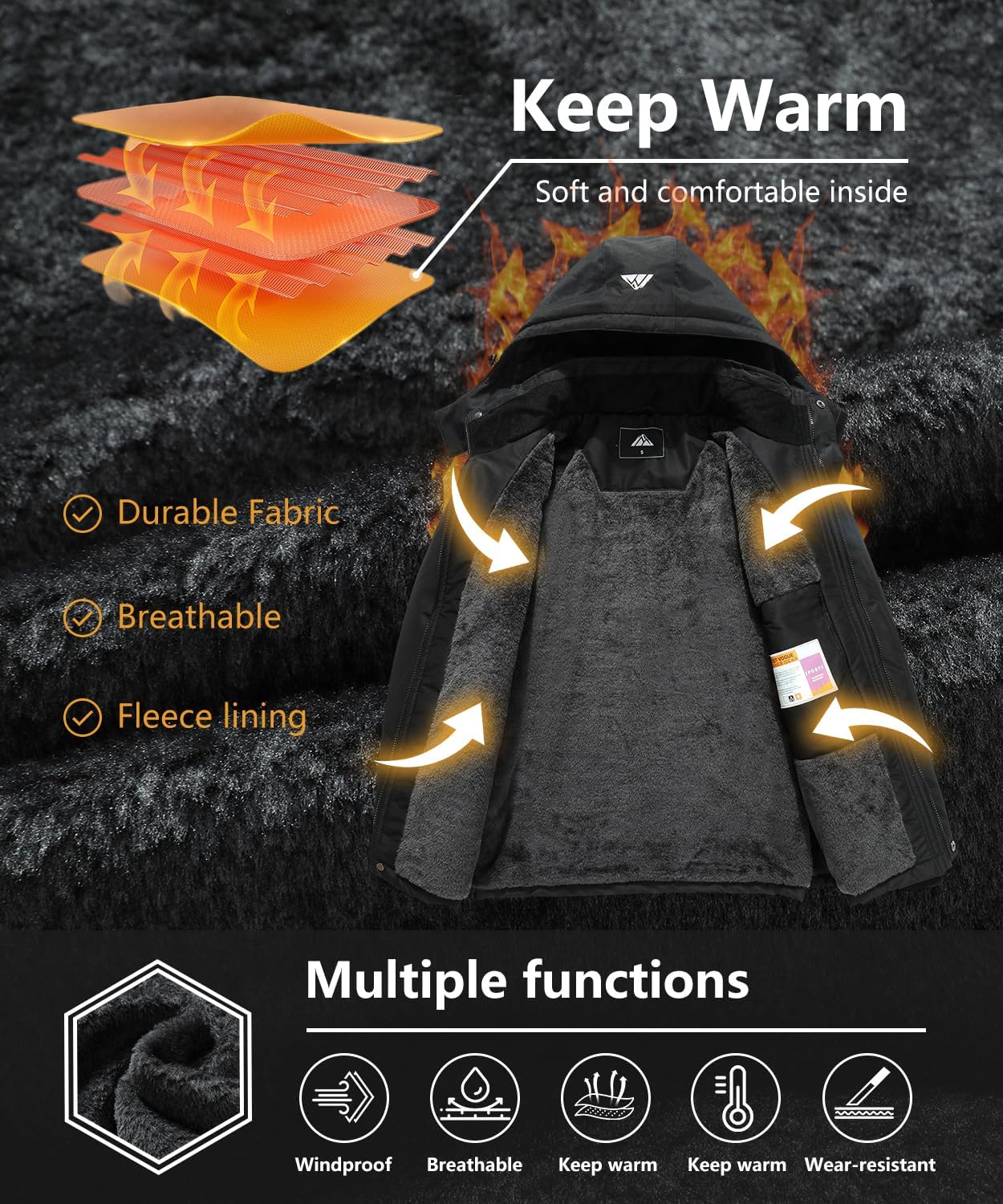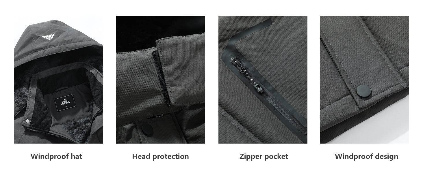 - Fleece Lined Warmth: Our windproof winter coat comes equipped with a thermal fleece lining, ensuring you stay warm in the chilliest weather. Ideal for skiing, the fleece lining acts as a barrier against the cold, making it your go-to jacket for staying toasty while hitting the slopes or exploring snowy landscapes