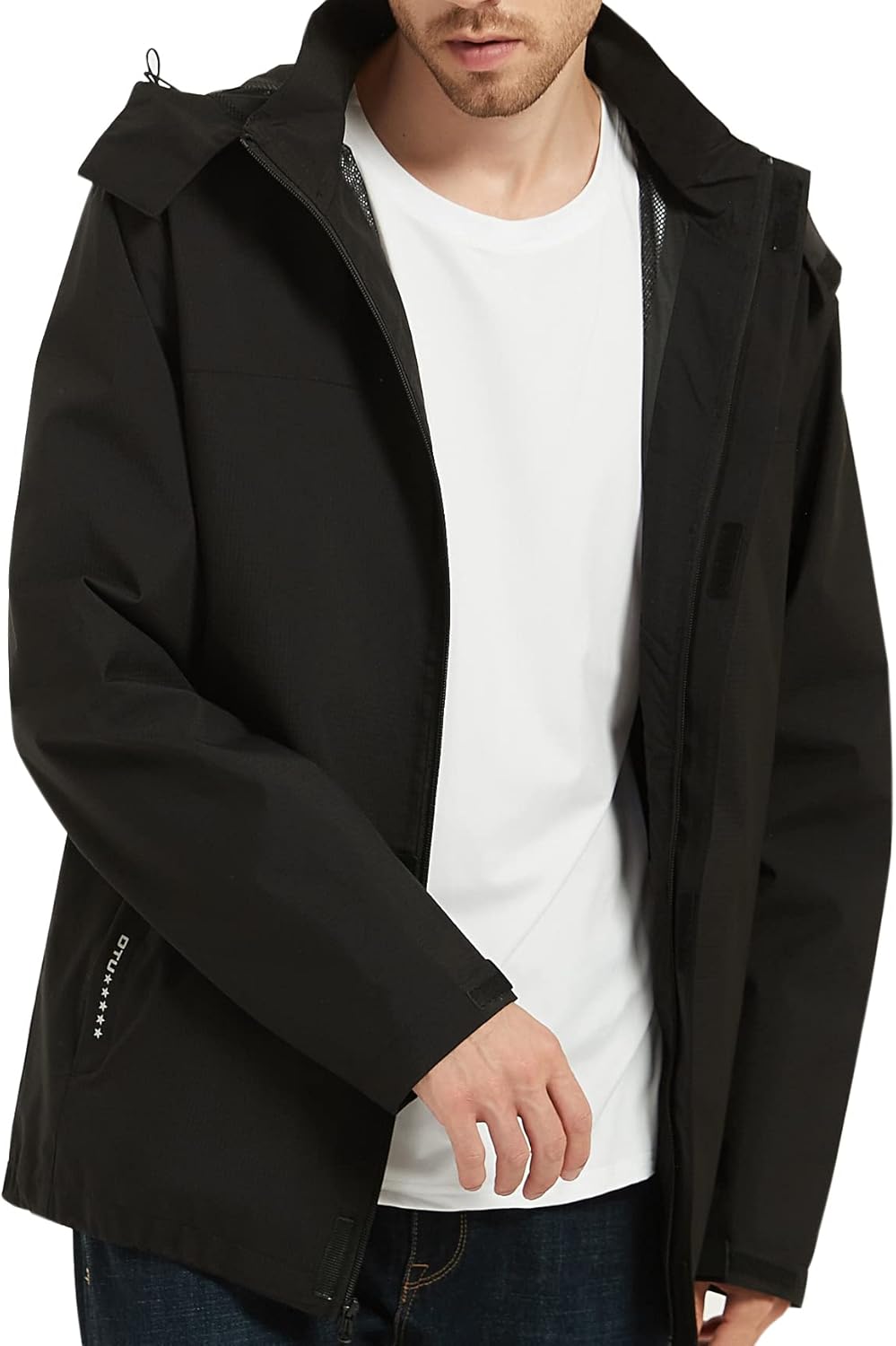 Men's Lightweight Waterproof Hooded Rain Jacket Outdoor Raincoat Shell Jacket for Hiking Travel
