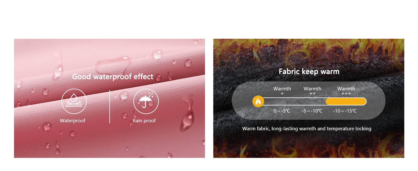 I bought this Waterproof Hooded Jacket with fur lining to keep from rain, wind and the cold winter, adequate for temps at 30s but glad to have bought one size larger for layered clothing and still be able to move about. I like the smoothness of the zipper quality and all the pockets with zippers.