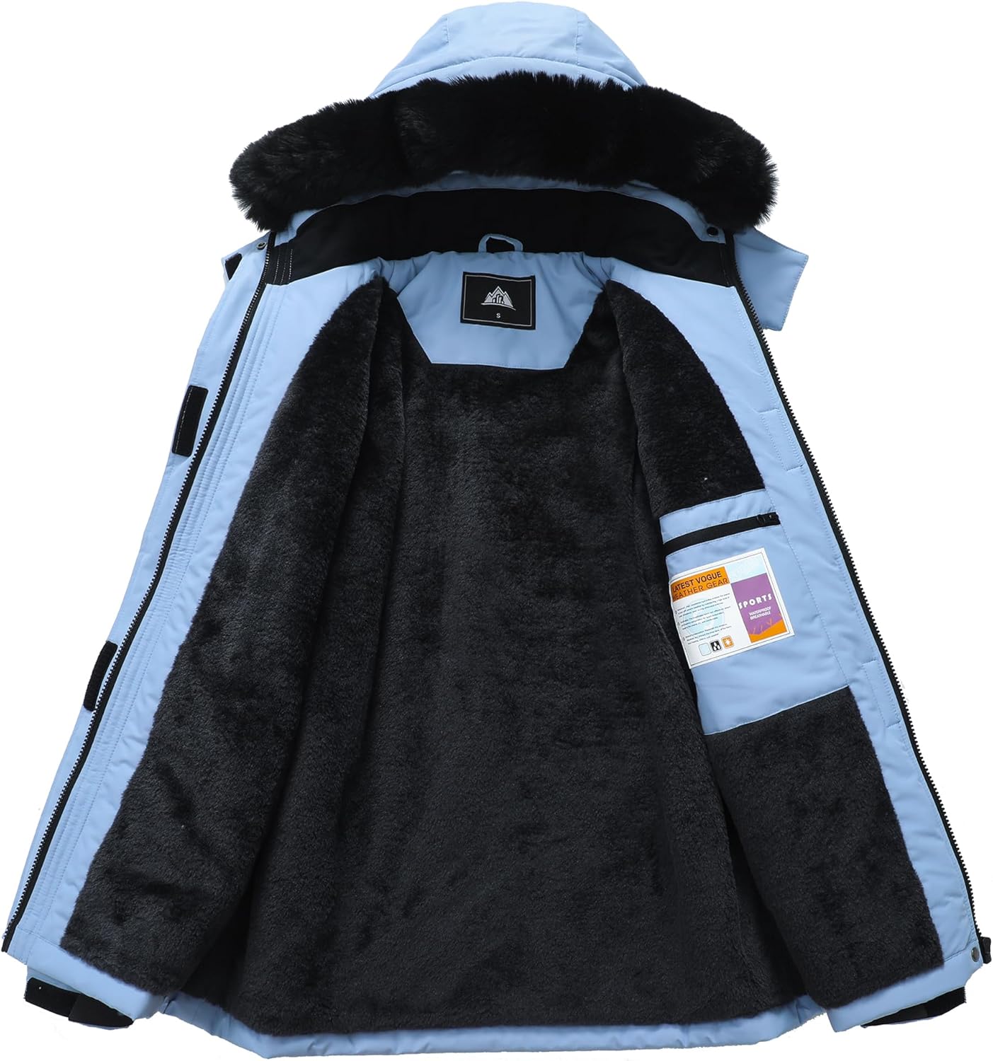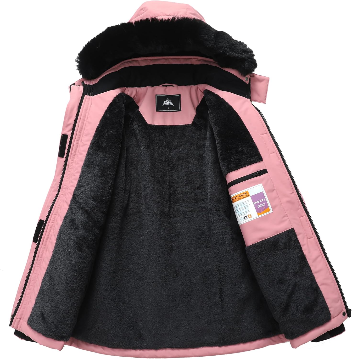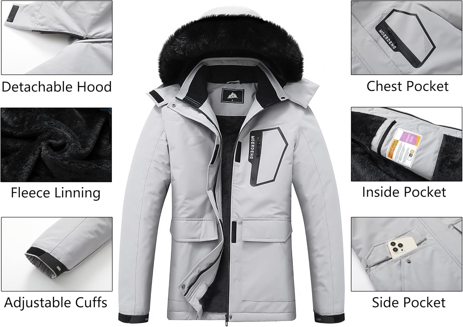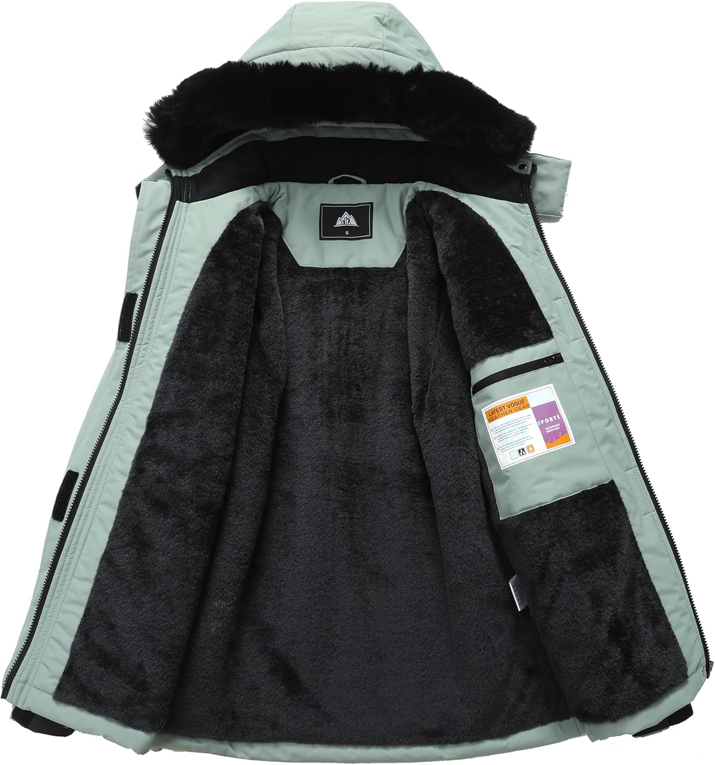 MOERDENG Women's Ski Jacket Waterproof Warm Winter Coat Hooded Snowboarding Jacket Versatile for Hiking & Winter Activities